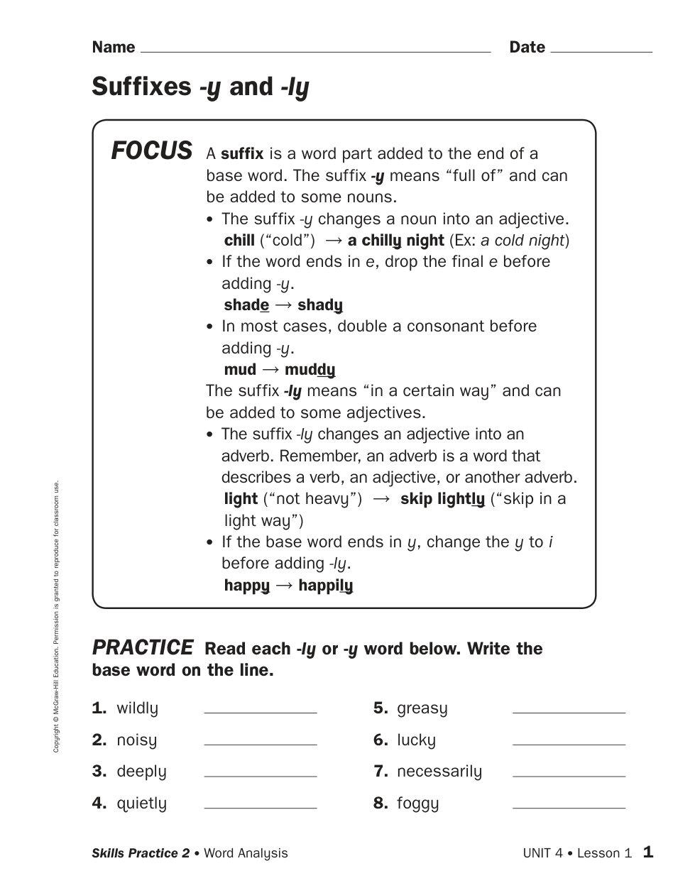 Write the base word on the line. (Look at number 17 on the skills book page)