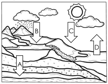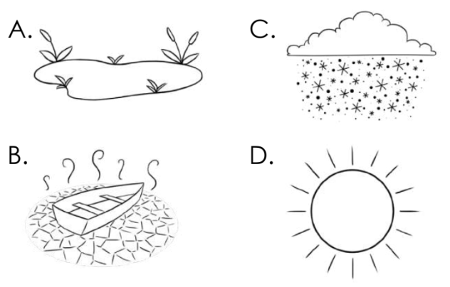 Which image shows the source of energy for the water cycle?