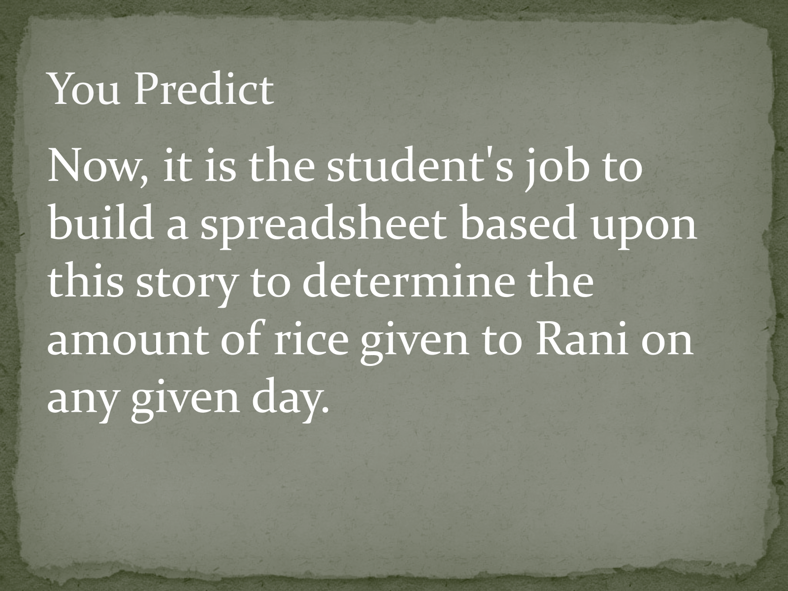 Use the chart below to record the number of grains of rice Rani would receive each day.