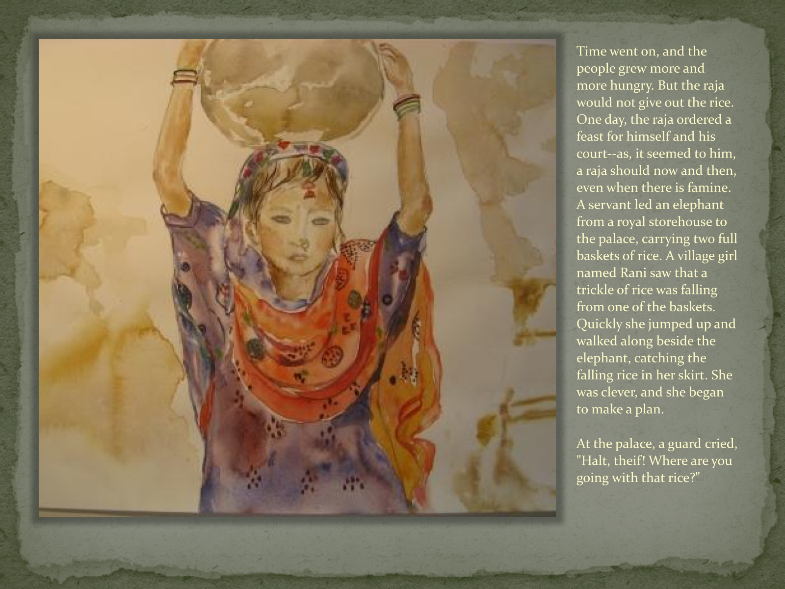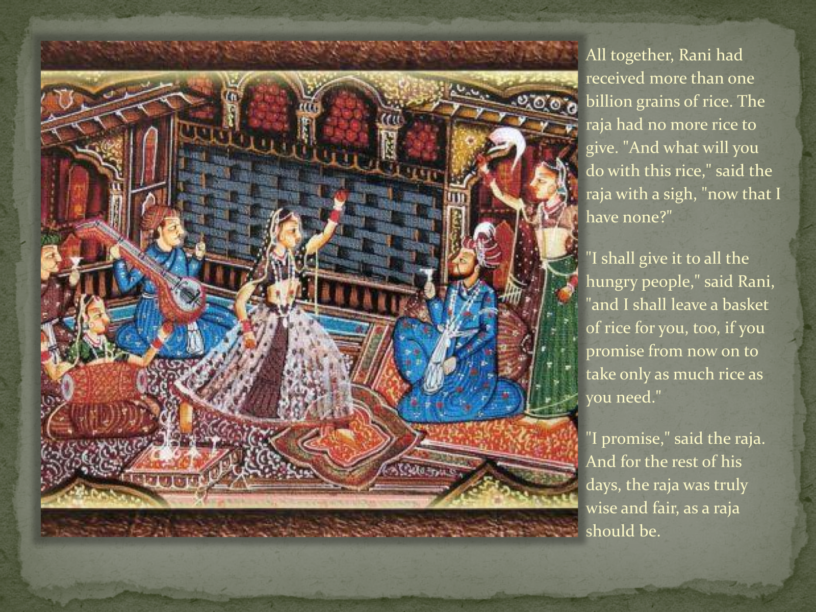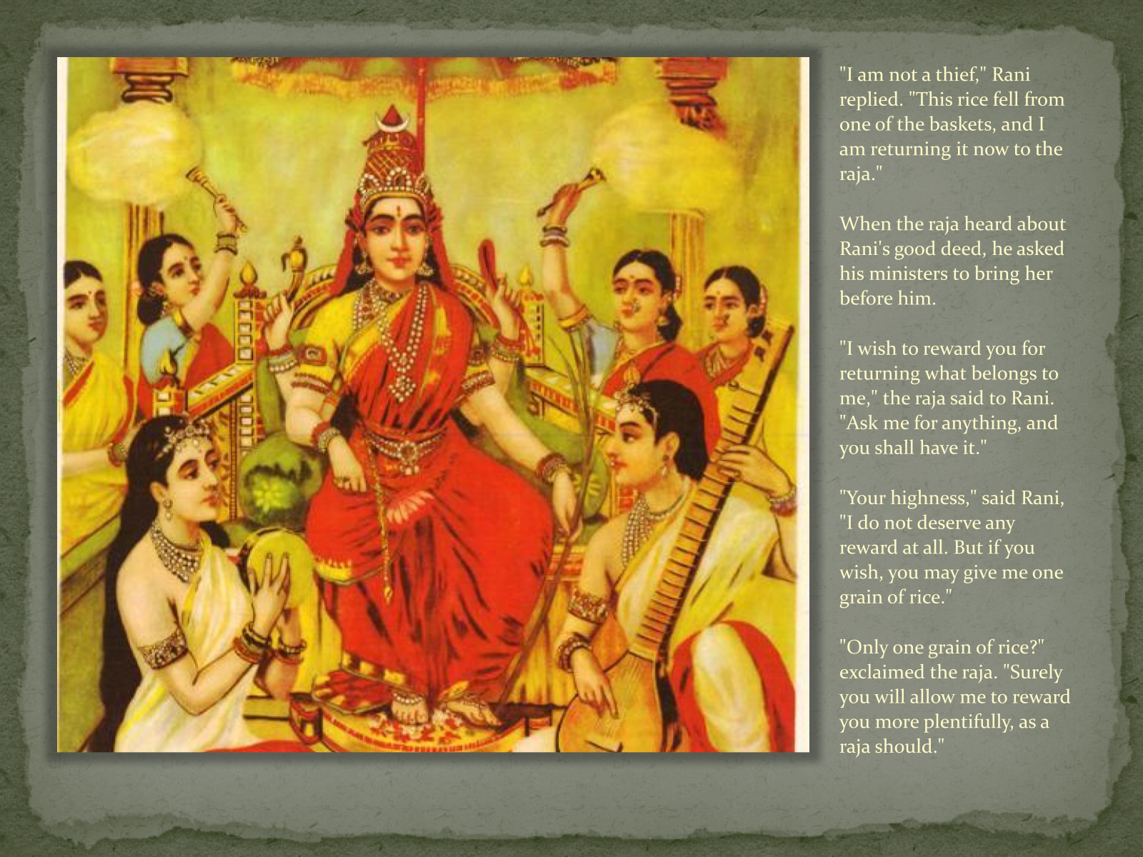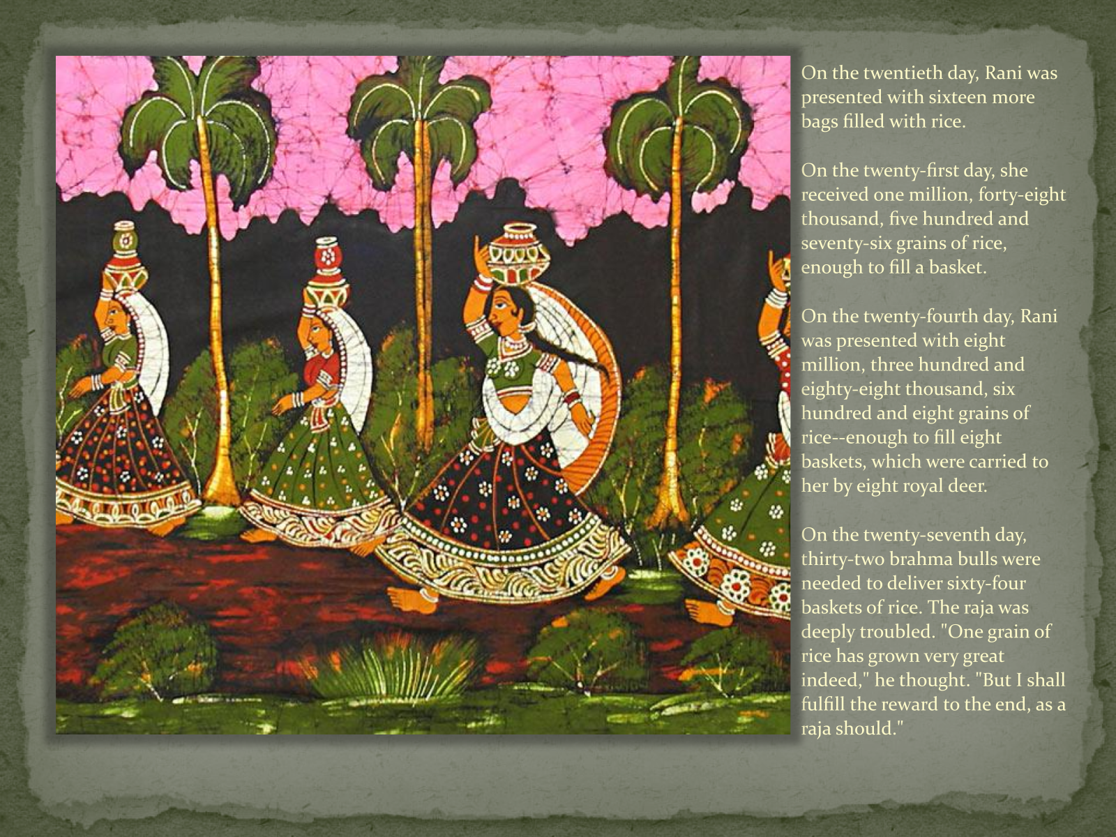 Write a sentence that describes how many grains of rice Rani receives each day.