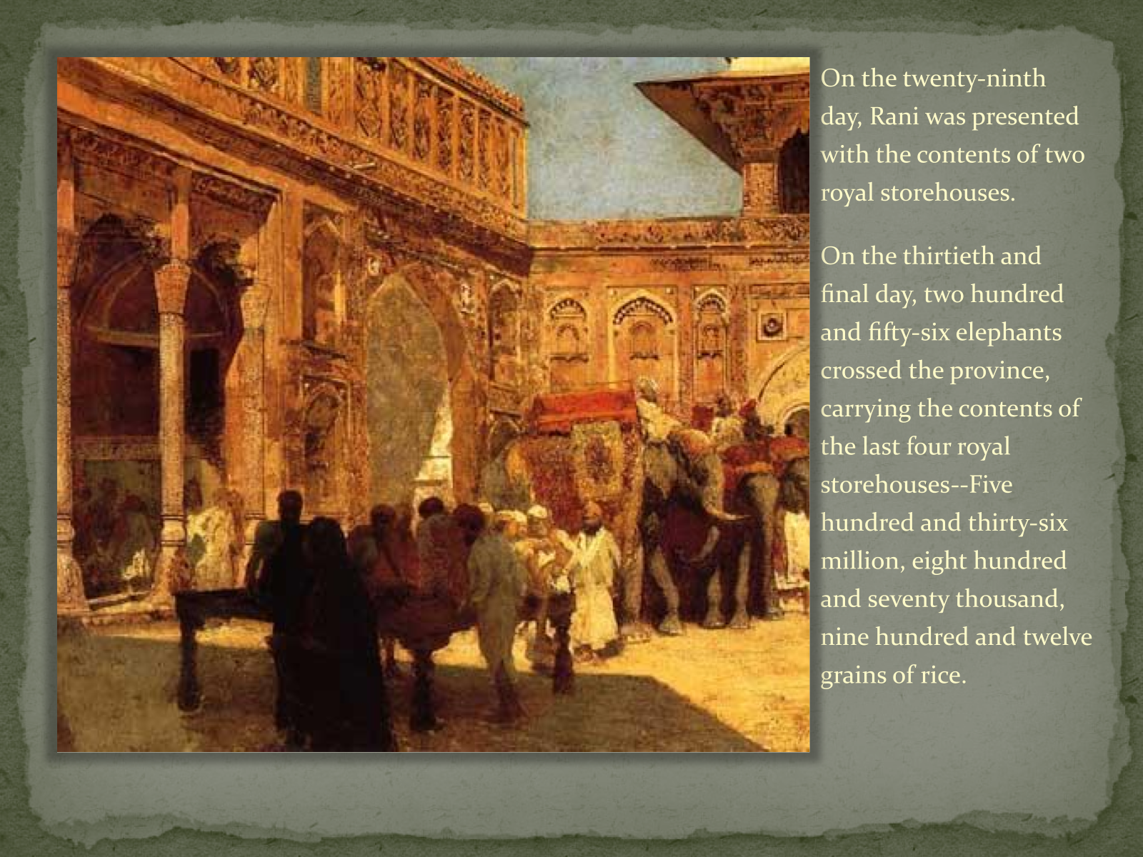 If the story continued and you know how many grains of rice Rani receives on Day 30 then answer the following: