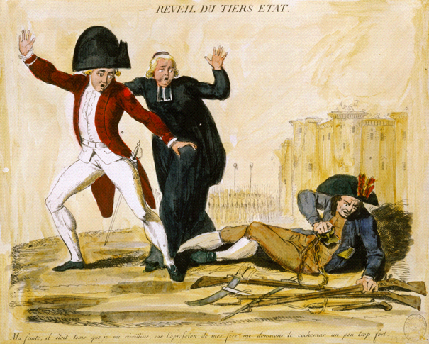 Which statement most accurately interprets this portrayal of the First, Second, and Third Estates of France?