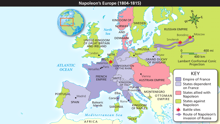 Based on the map below, which of the following describes a lasting impact of the Napoleonic Wars?