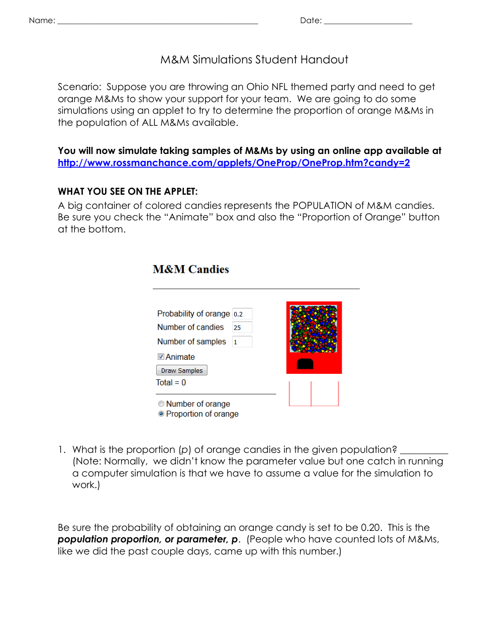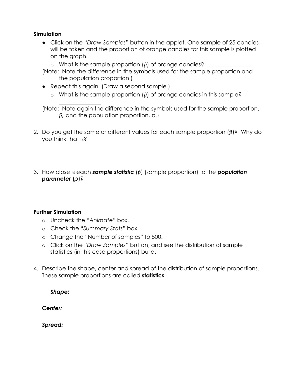 Repeat this again. (Draw a second sample.) What is the sample proportion (𝑝̂) of orange candies in this sample?
