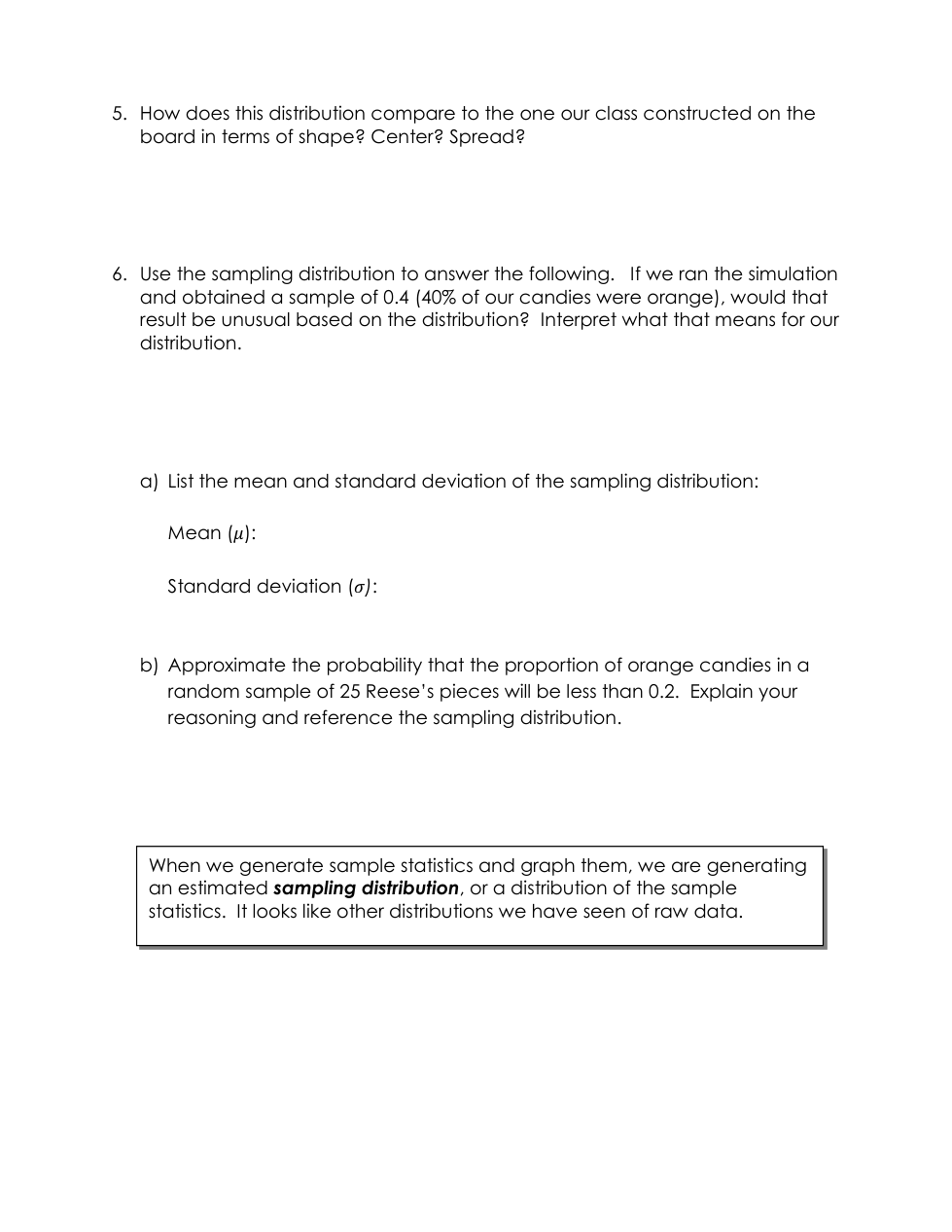How does this distribution compare to the one our class constructed on the board from our previous lesson in terms of shape? Center? Spread?