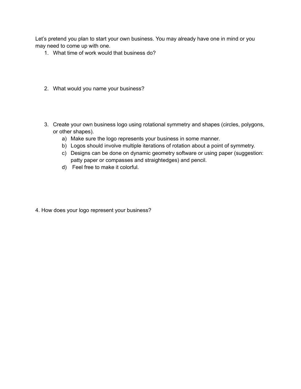 Let’s pretend you plan to start your own business. You may already have one in mind or you may need to come up with one.What type of work would that business do?