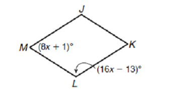 In parallelogram JKLM, what is the value of measure of angle K?
