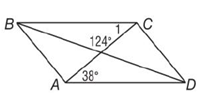 For parallelogram ABCD, find the measure of angle 1.