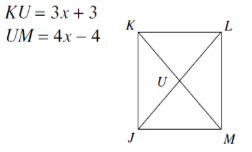 The diagonals of a square ABCD intersect at E. If AE=3x-4 and BE=10x-46, find AC.