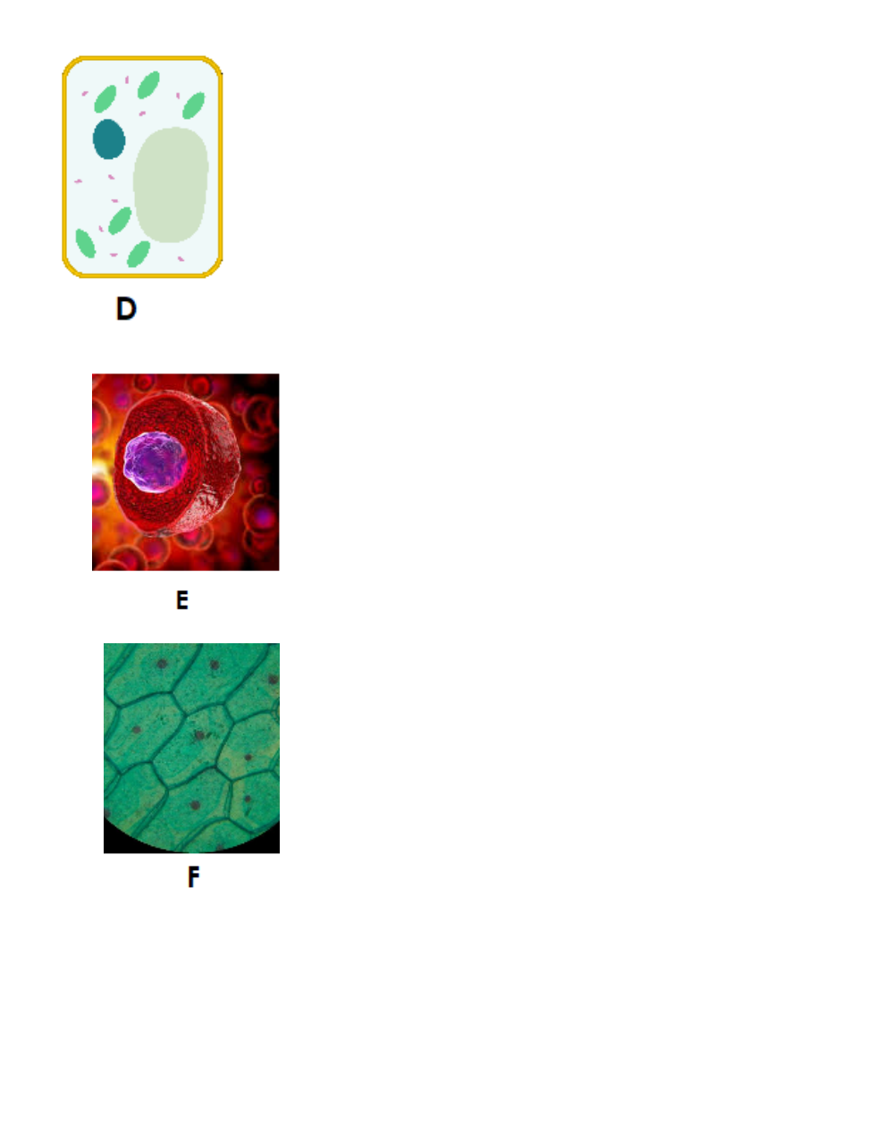 **Bonus Question** (not required but correct answer can earn 5 points) Construct an explanation that differentiates (shows the difference) between a plant cell and a animal cell. (responses should be 2-4 sentences)