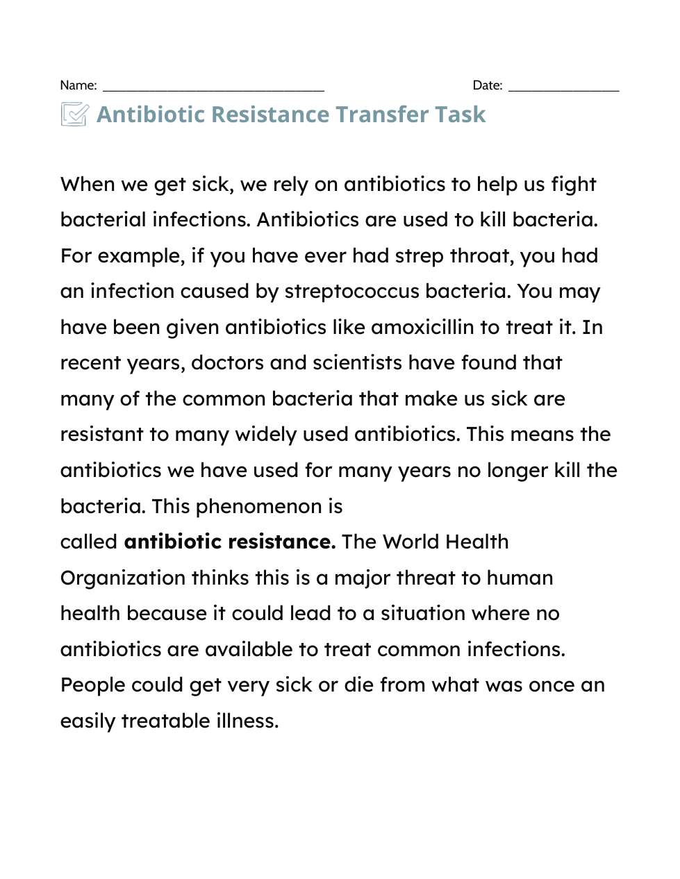 Antibiotic Resistance (Lesson 6 Transfer Task)