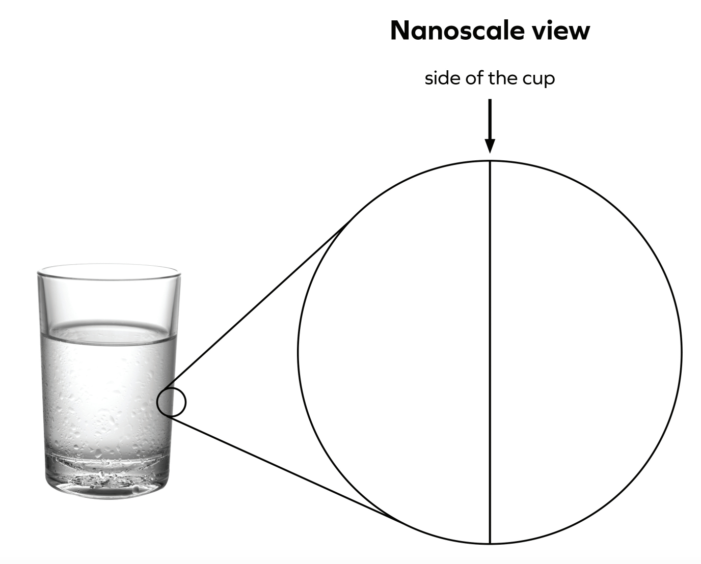 - Add water molecules to each nanoscale zoom-in to show what happens at the nanoscale.