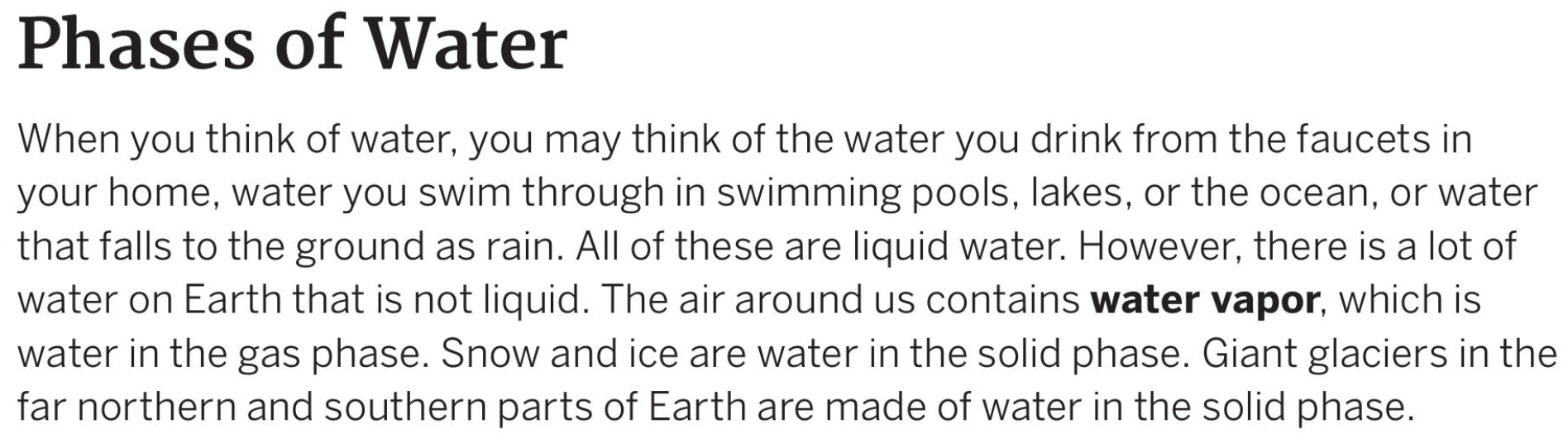 Read the pages below to learn about the different phases of water.