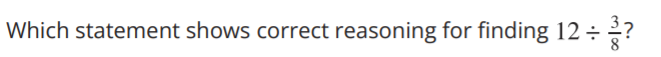 Which statement shows correct reasoning for finding 12 divided by 3/8?