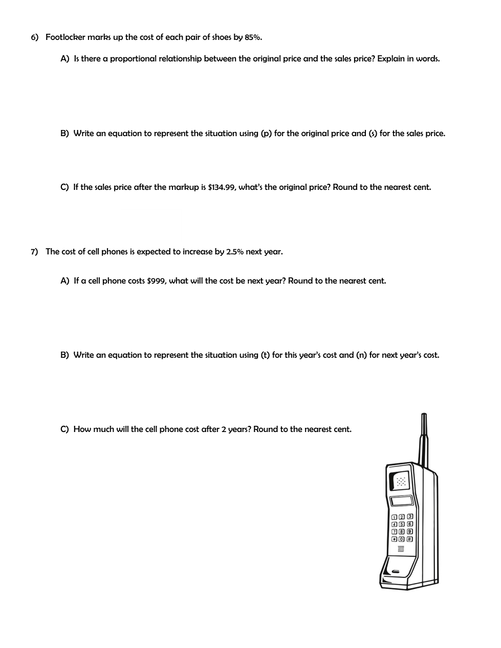 Write an equation to represent the situation using (p) for the original price and (s) for the sales price.