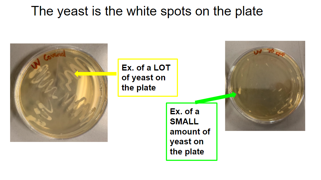 Write down one observation that you have about the UV sensitive yeast that was not covered (fully exposed to the UV radiation)