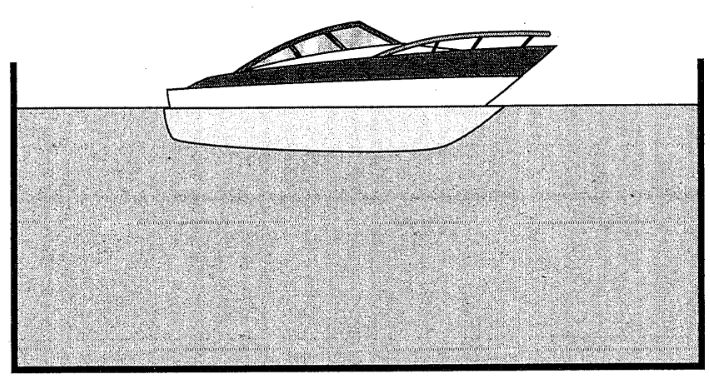 What causes the part of the boat's hull that is underwater to appear larger than the part just above the water line?