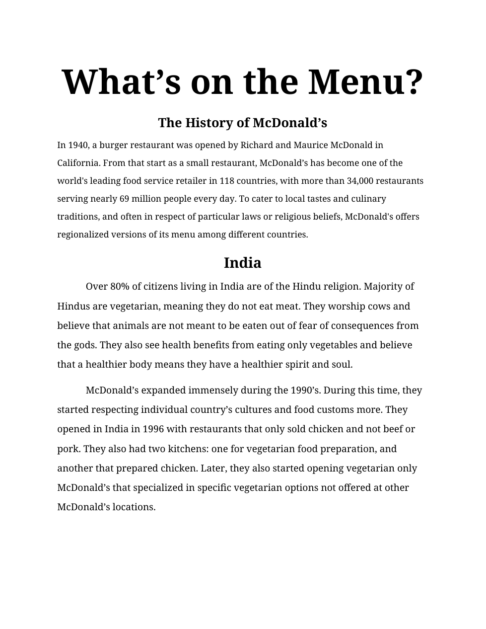 If McDonald’s did not respect a country’s religious or cultural preferences, do you think people would still eat there? Why or why not?