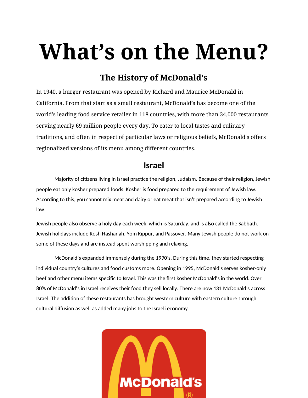 What cultural or religious difference do you see in this country? What does McDonald’s do to respect these differences?