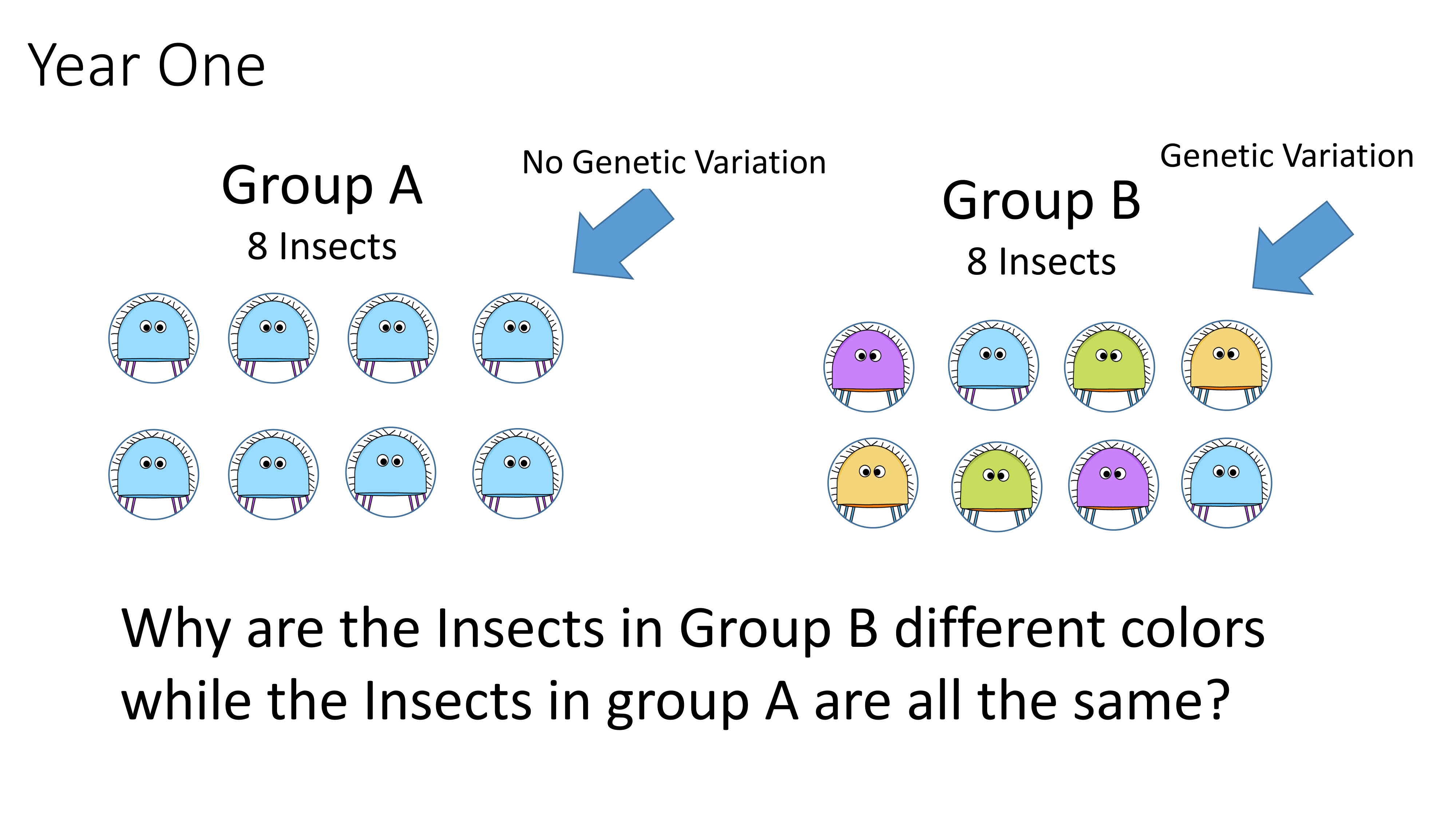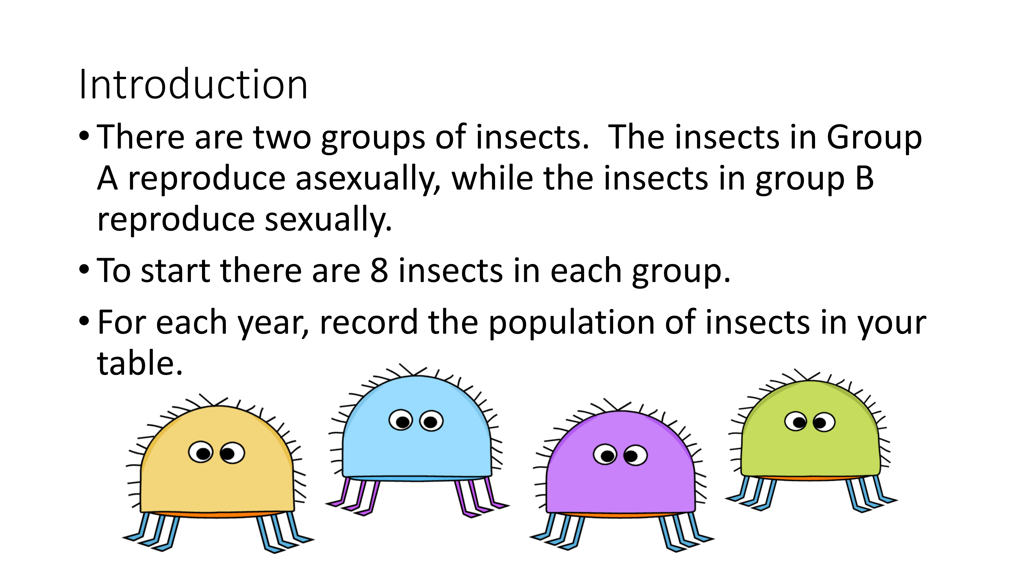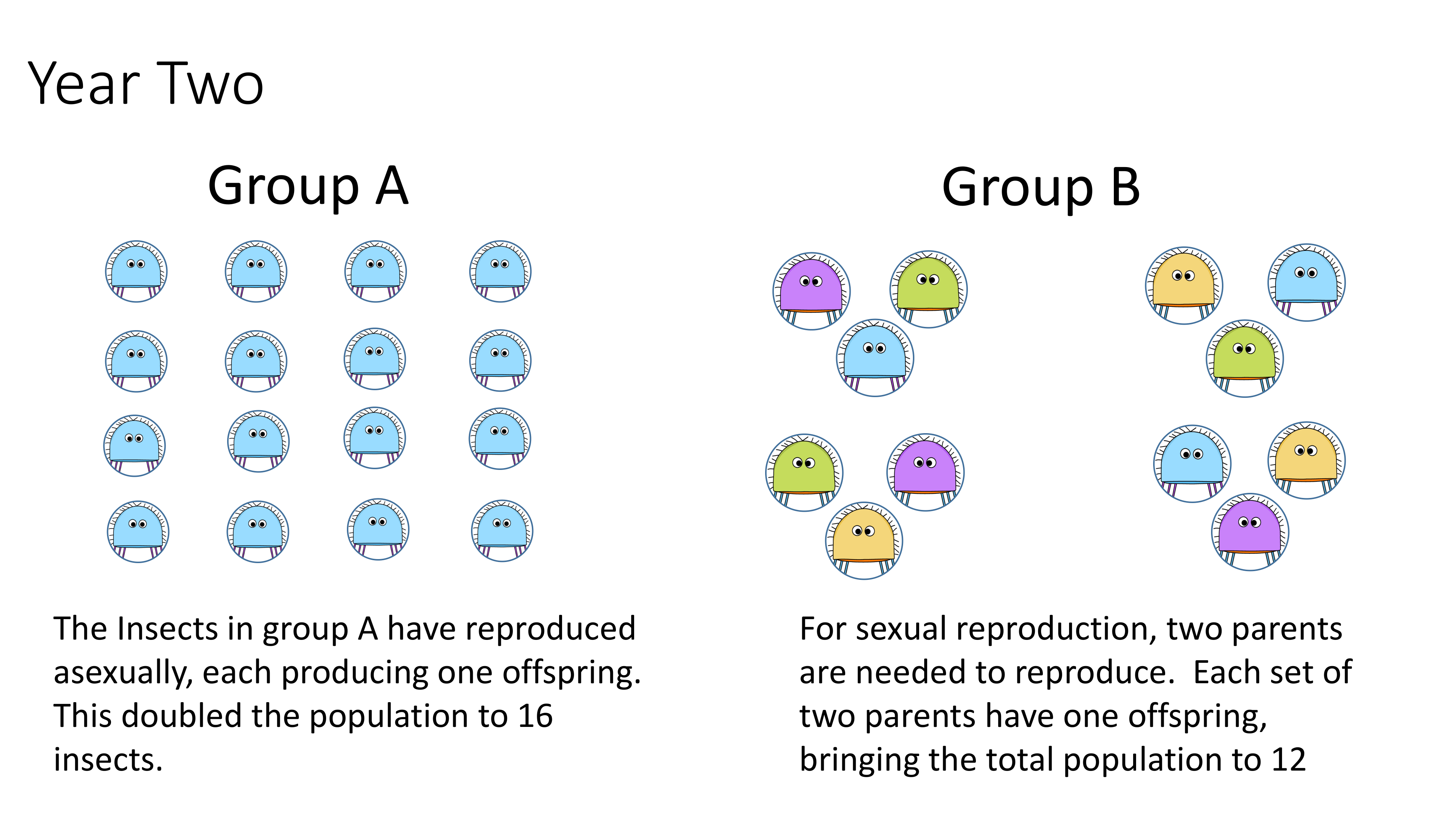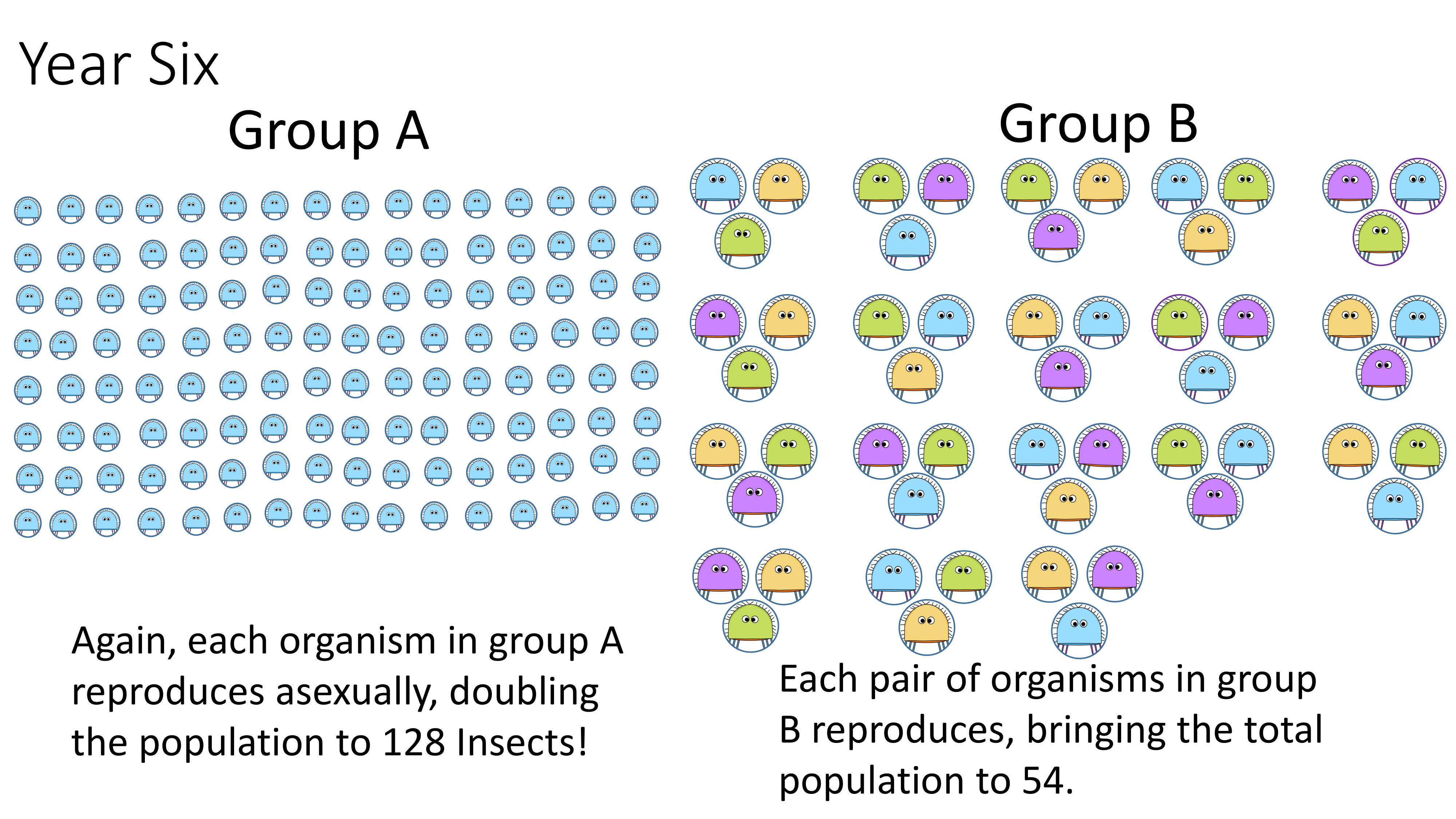 Group A started with 8 insects, in year 2 how many insects are there in group A?