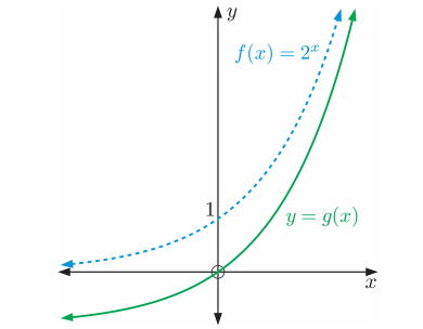 Write the exponential function that represents a shift of 5 units to the left and 3 units upward from the base function