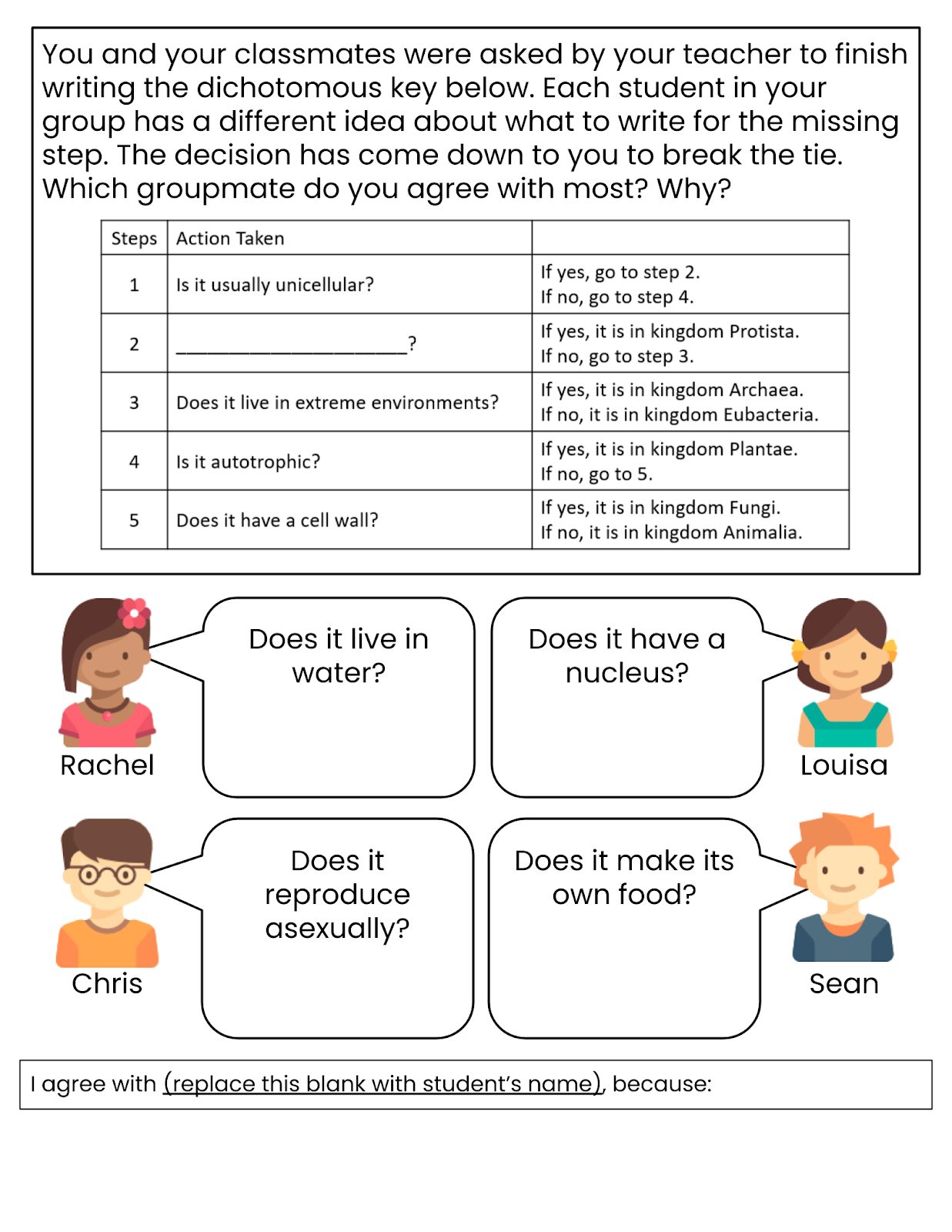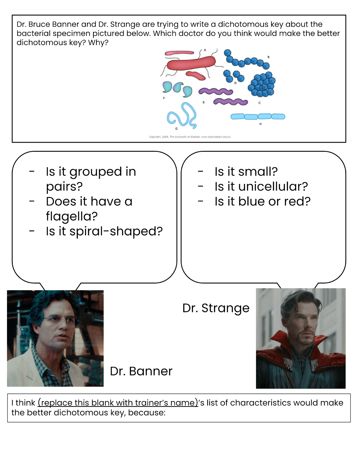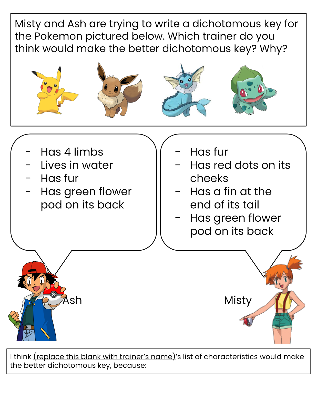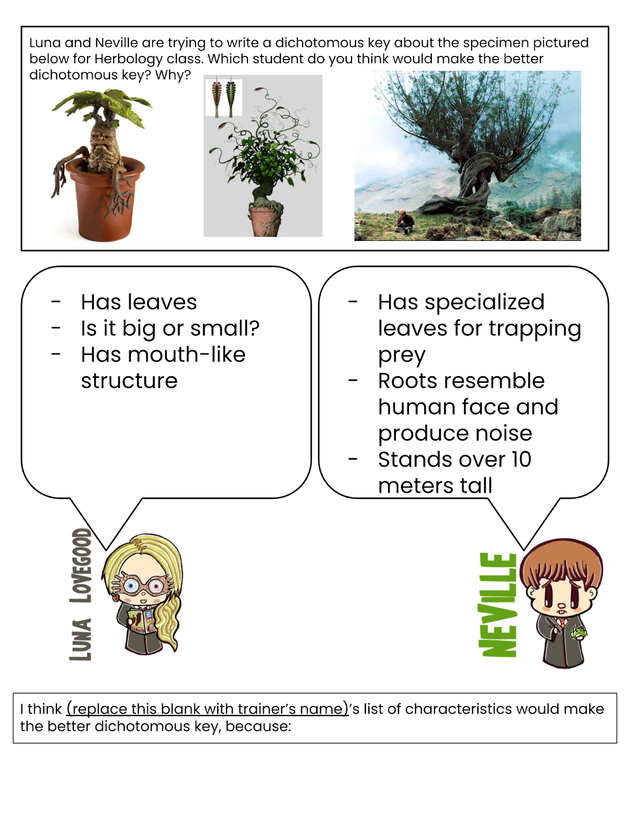 Claim: Who's list of characteristics do you think would make the better dichotomous key?