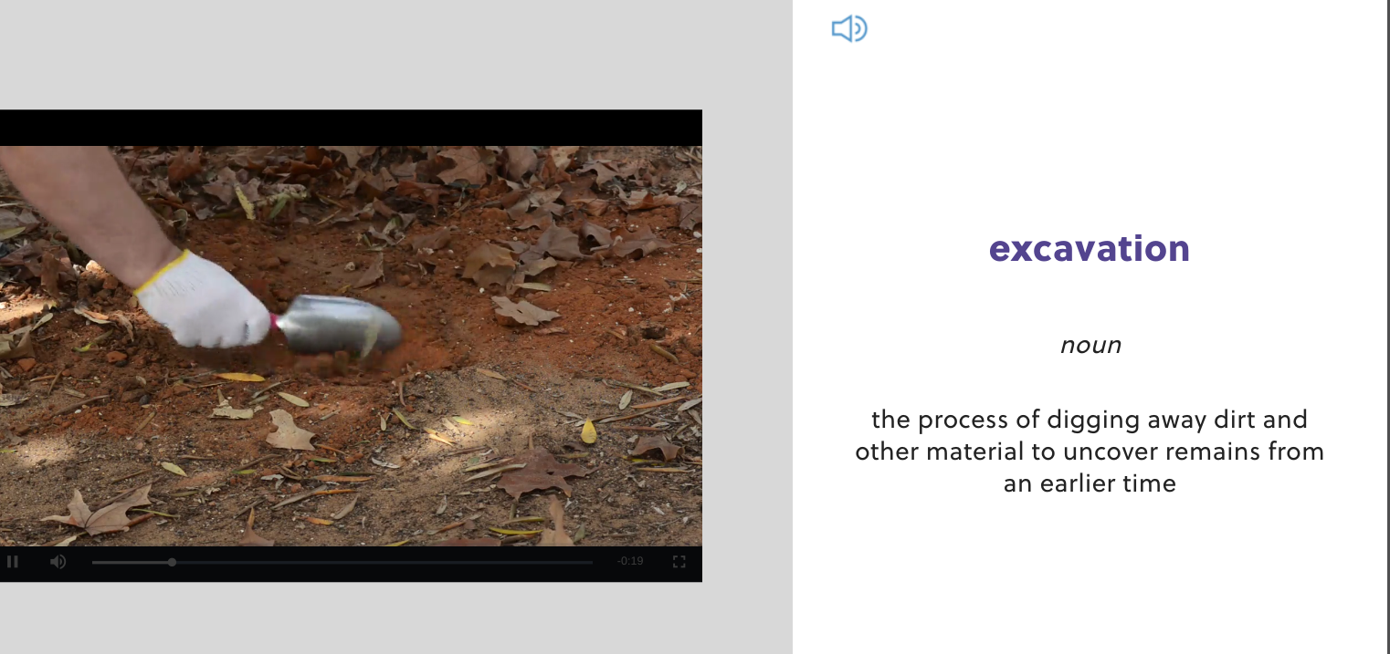 The process of digging away dirt and other material to uncover remains from an earlier time.