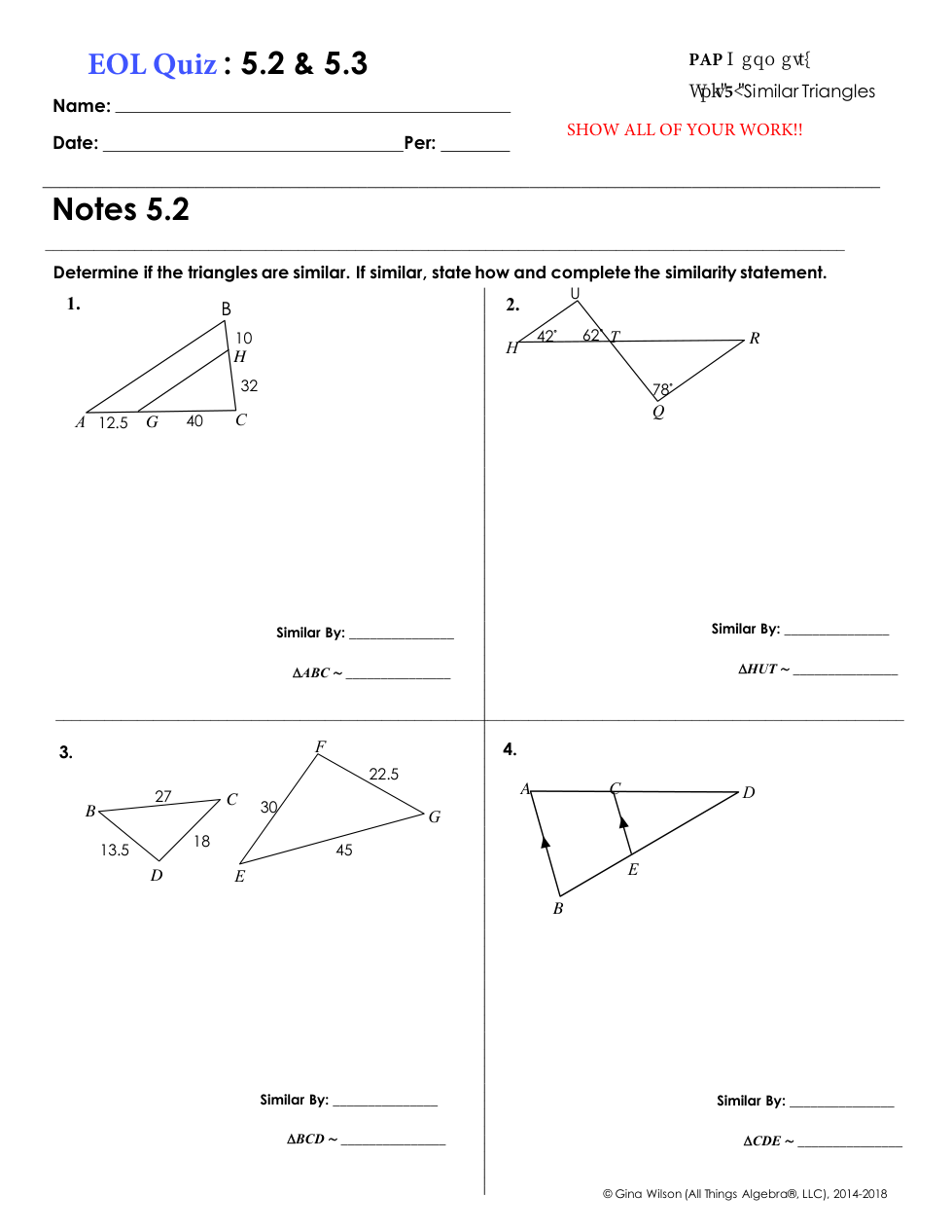 You may use your notes/formative notes/videos to help you answer these quests. Please be sure to show your work!!