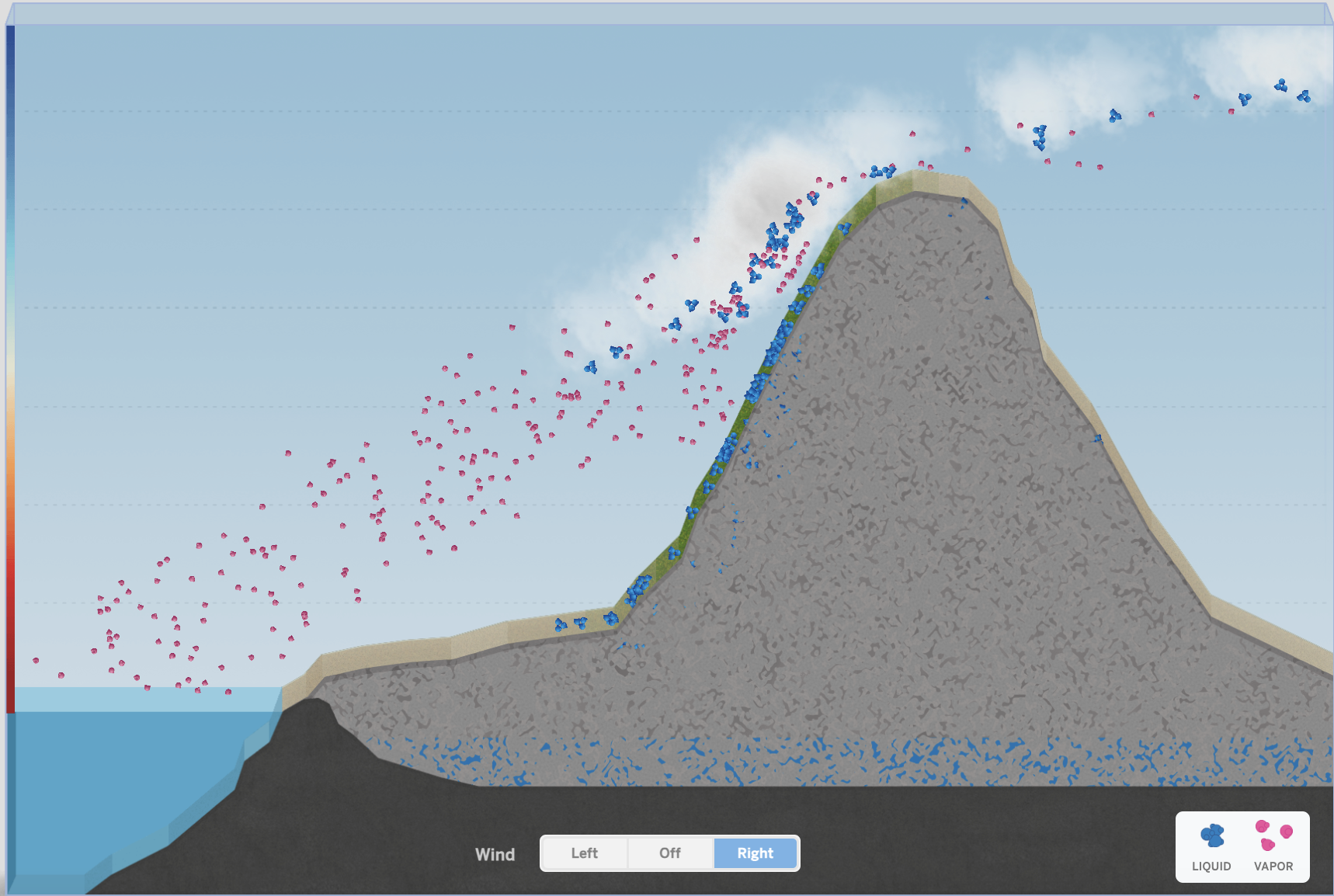 Claim: The city that would have the most liquid water moving during the day is ________________.