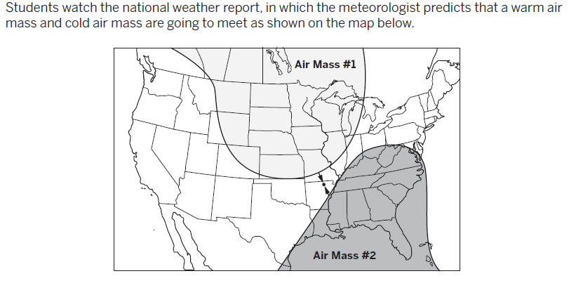 Which is the most likely weather condition that will occur at the location where the two air
