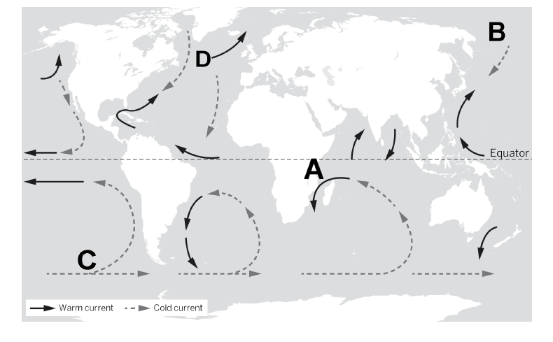 Raquel thinks that the current that carries the most energy is located at the area labeled A. Is