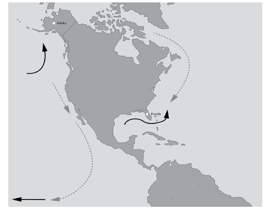 How do the currents off the coast of Florida and Alaska compare?