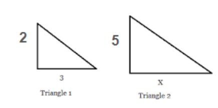 Triangle 2 is a scale copy of triangle 1. Use the scale factor to solve for the missing side