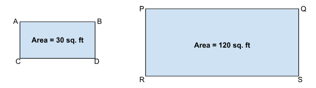 The figures below are both similar rectangles. The larger rectangle is the scaled copy.