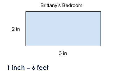 Brittany has a blueprint of her bedroom that is 2 in by 3 inches.