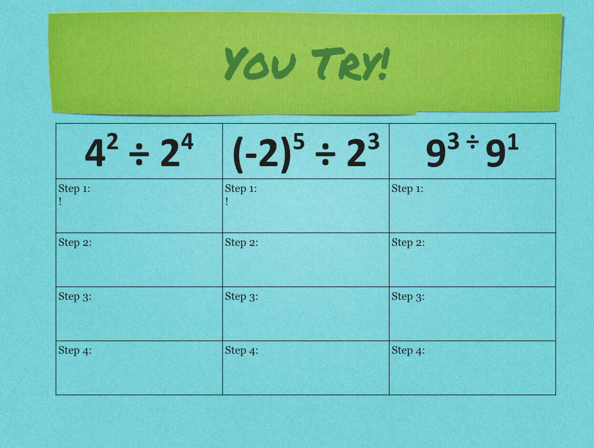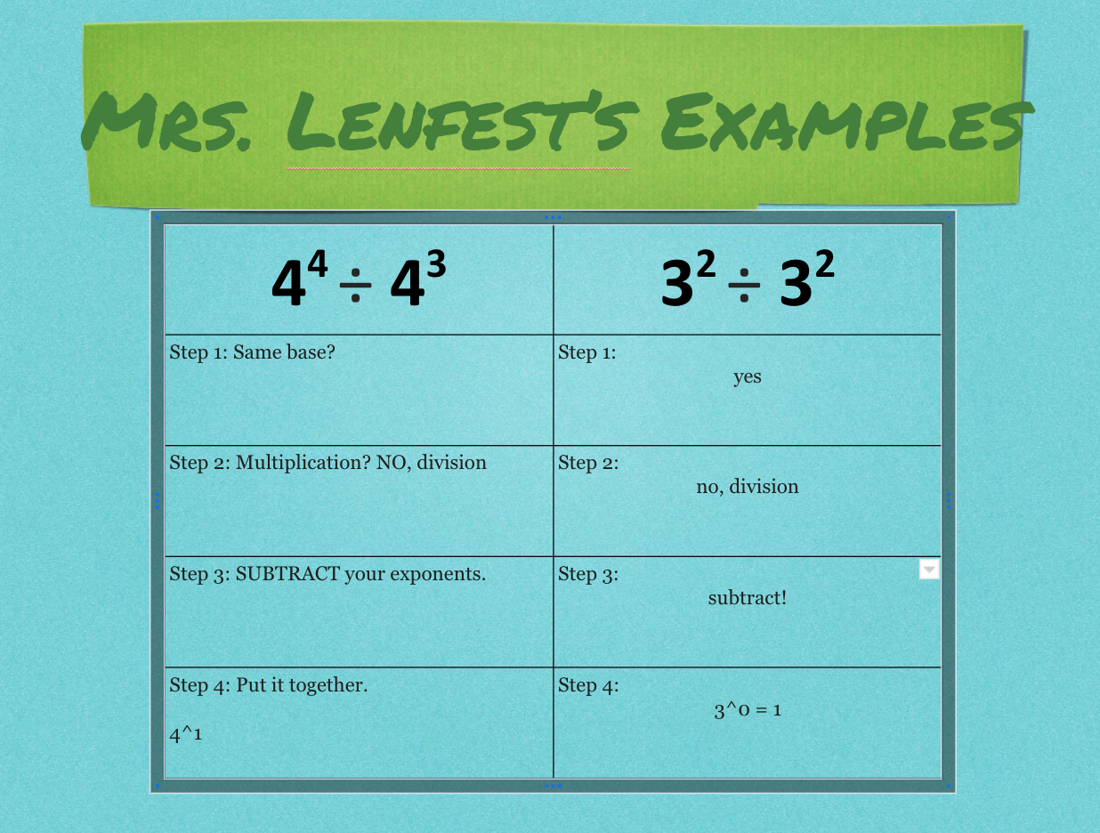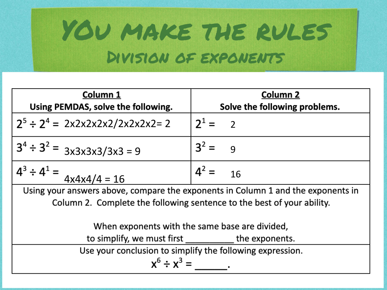 when exponents with the same base are divided, to simplify, we must first _______ the exponents