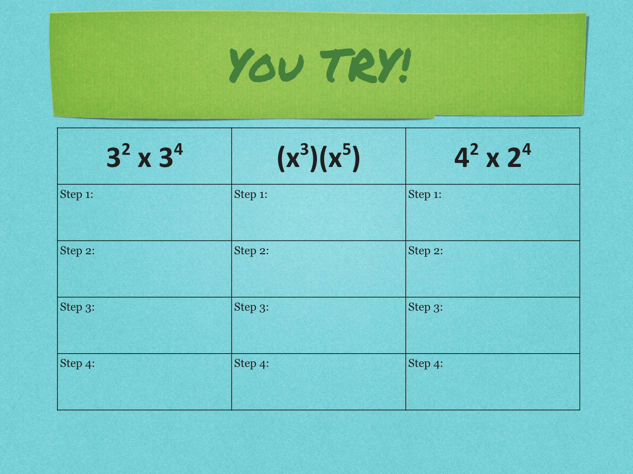 When exponents with the same base are multiplied, to simplify we must first _______ the exponents
