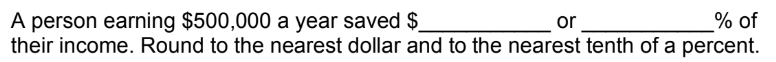 A person earning $500,000 a year saved _______ or _______ of their income.