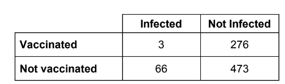 _______ % of those not vaccinated were infected.