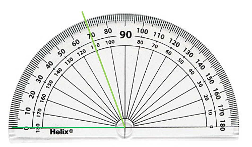 - Decide which side of the protractor you are using by finding where the bottom of the angle crosses 0