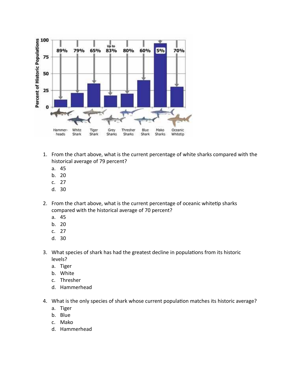 From the chart above, what is the current percentage of white sharks compared with the historical average of 79 percent?
