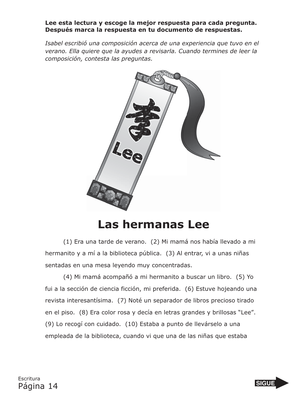 Lea la pregunta, use la lectura "La Hermanas Lee" para responder la pregunta.