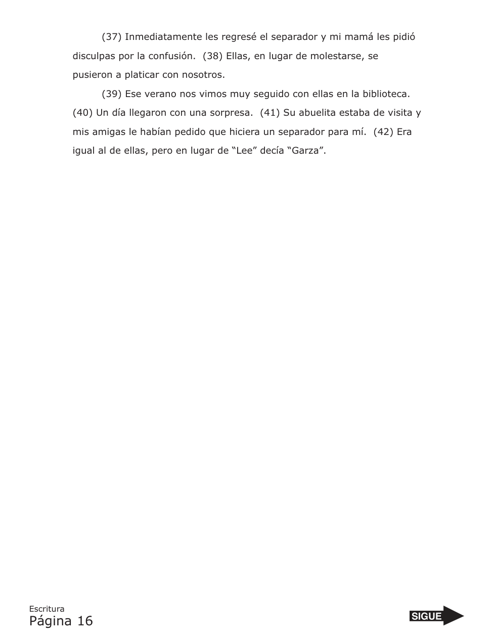 La oración 16 es confusa. En el espacio provisto, escribe la oración 16 de manera clara y efectiva.