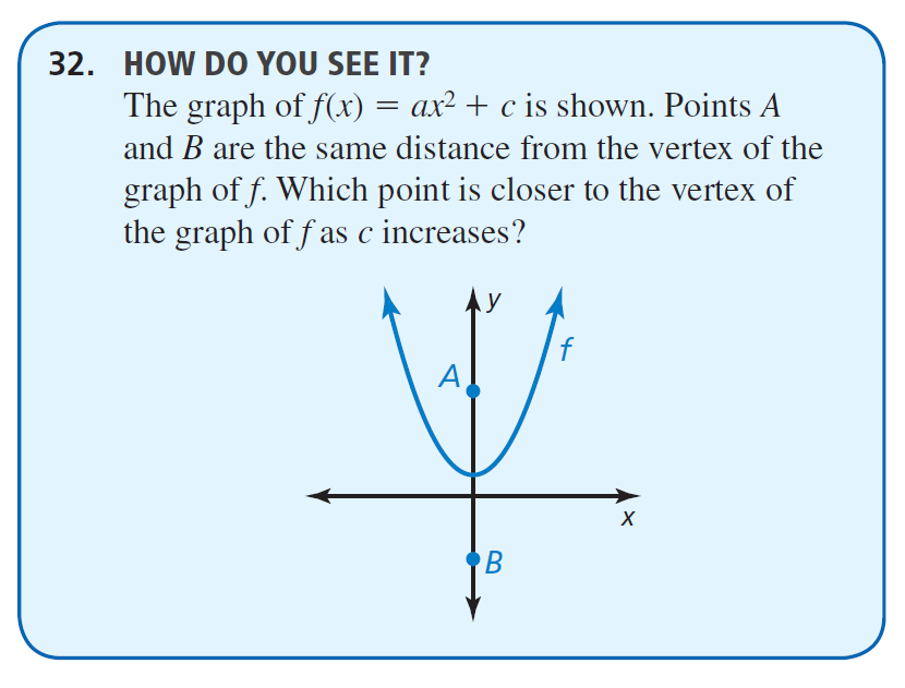 Identify characteristics of the quadratic function in the previous question: