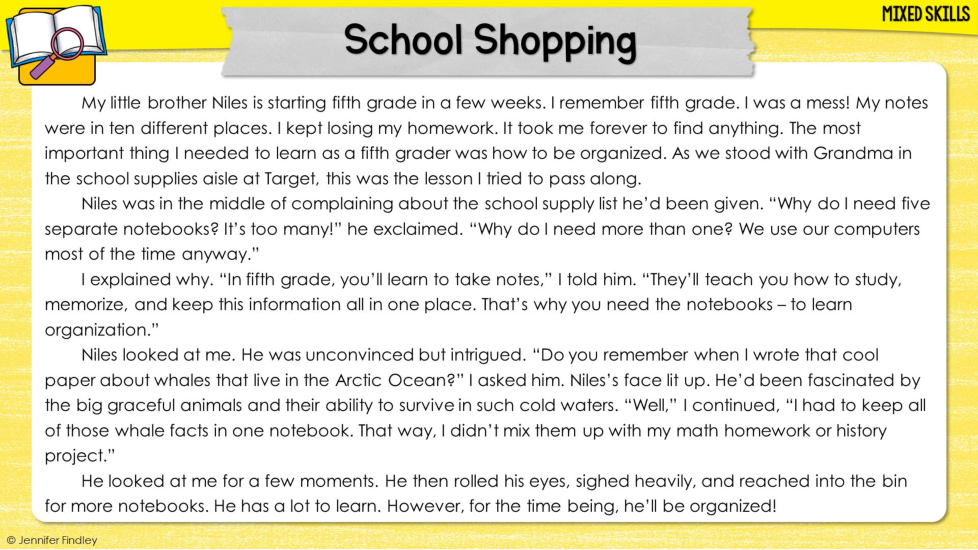 Reread the first paragraph. What lesson did the sister feel she needed to pass along to Niles before he starts fifth grade?