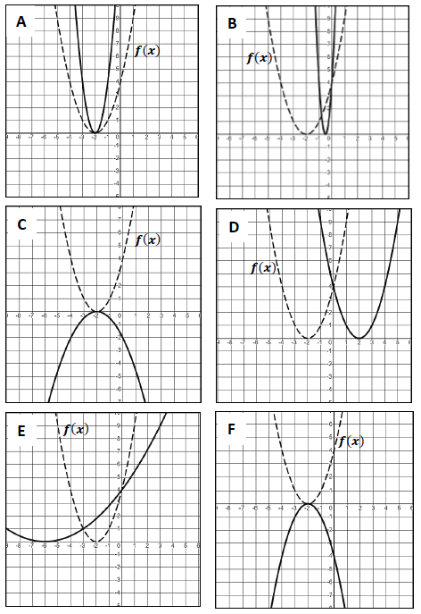 Suppose that the graph of the function 𝑓(π‘₯) (shown with a dashed line) is dilated in different ways.