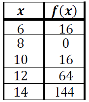 Several points on the graph of a quadratic function {𝒇(𝒙)} are shown in the table.