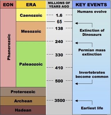 Draw an event from the Geologic Timeline in your Notebook. Give ERA and How long ago it happened.