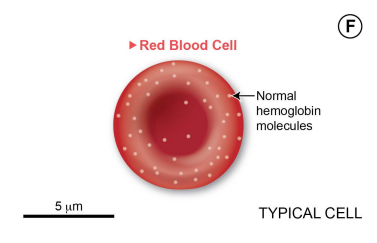 COMPARE and CONTRAST the typical and sickled red blood cells and their associated hemoglobin molecules.