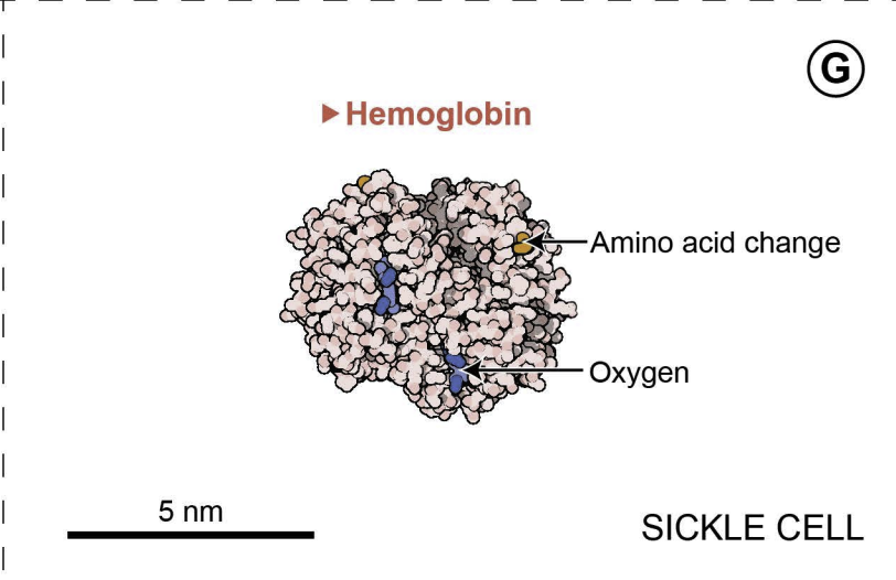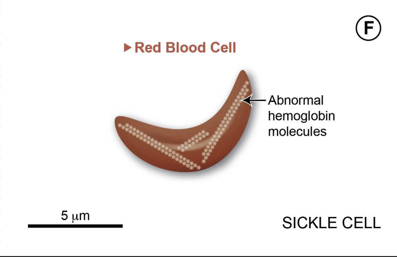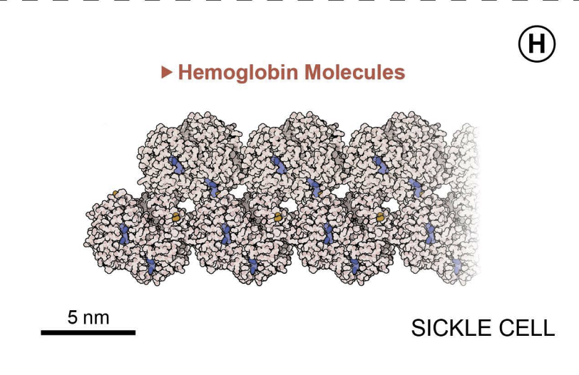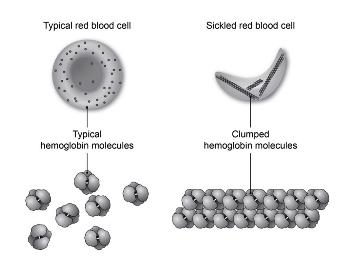 Figure 2 shows typical and sickled red blood cells, as well as the hemoglobin molecules found in each cell type.